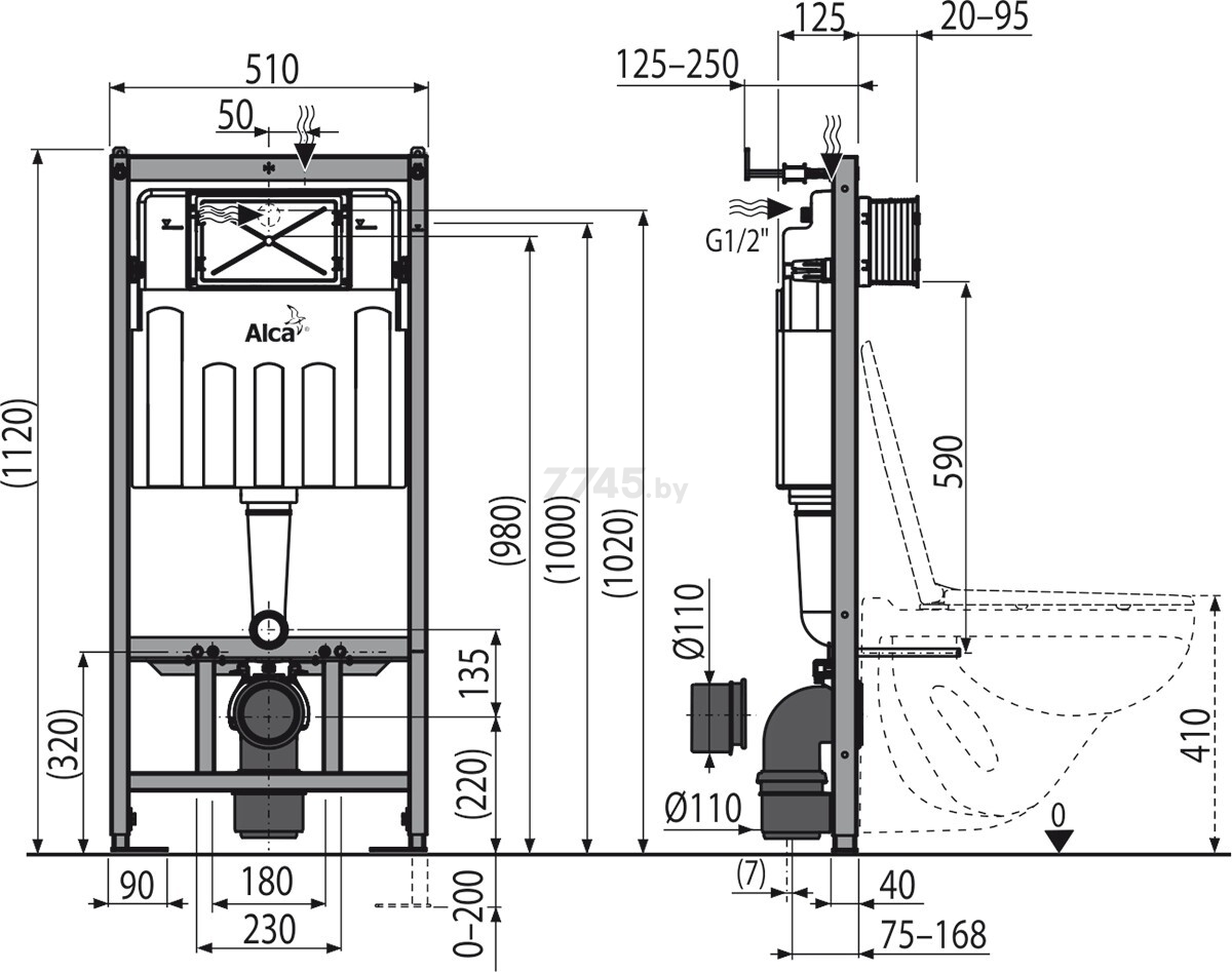 Скрытая система инсталляции для сухой установки (для гипсокартона) (высота монтажа 1,2 м) Sadroмodul - обновленная модель 2021 года.