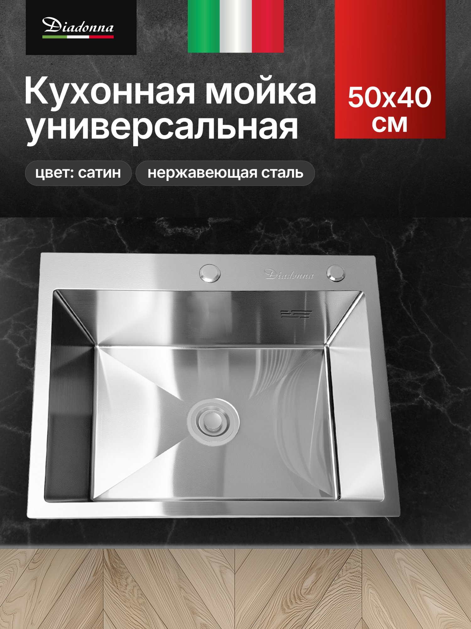 Кухонная мойка из нержавеющей стали сатин Diadonna 50x40 — это идеальное решение для вашего кухонного пространства. Она сочетает в себе элегантный дизайн и высокую функциональность, что делает её незаменимым элементом в любом кухонном гарнитуре. Изготовленная из качественной нержавейки, эта мойка гарантирует долговечность и устойчивость к коррозии, а её сатиновая поверхность придаёт кухне современный вид. Выбирая мойку для кухни, вы получаете многофункциональный инструмент, который облегчает процесс готовки и уборки. Модель Diadonna 50x40 обладает оптимальными размерами, что позволяет удобно размещать её как в больших, так и в небольших кухнях. Накладная конструкция обеспечивает простоту установки и легкость в использовании, а также позволяет сэкономить пространство на столешнице. раковина для кухни подходит для любых задач: от мытья овощей и фруктов до очистки посуды. В комплекте с мойкой предусмотрен слив для раковины и сифон, что упрощает подключение и использование. Вы можете дополнить её стильными аксессуарами, такими как дозатор моющего средства или сушилка для посуды, что сделает вашу кухню ещё более функциональной. Нержавеющая сталь, из которой изготовлена мойка, не только устойчива к механическим повреждениям, но и легко очищается от загрязнений. Это особенно важно для поддержания чистоты на кухне, где гигиена играет ключевую роль. Ваша новая кухонная мойка станет не только практичным, но и стильным элементом интерьера, который будет радовать глаз. Кроме того, мойка Diadonna идеально вписывается в любой кухонный гарнитур и может сочетаться с различными столешницами. Вы можете выбрать её как основное решение для вашей кухни или как часть комплекта с другими элементами сантехники. Благодаря своему универсальному дизайну, она станет отличным подарком для тех, кто ценит качество и стиль в интерьере. Не упустите возможность обновить вашу кухню с помощью этой многофункциональной мойки. Она станет надежным помощником в вашем доме и подчеркнёт ваш вкус. Выбирайте качество, выбирайте стиль — выбирайте мойку из нержавеющей стали Diadonna 50x40!
