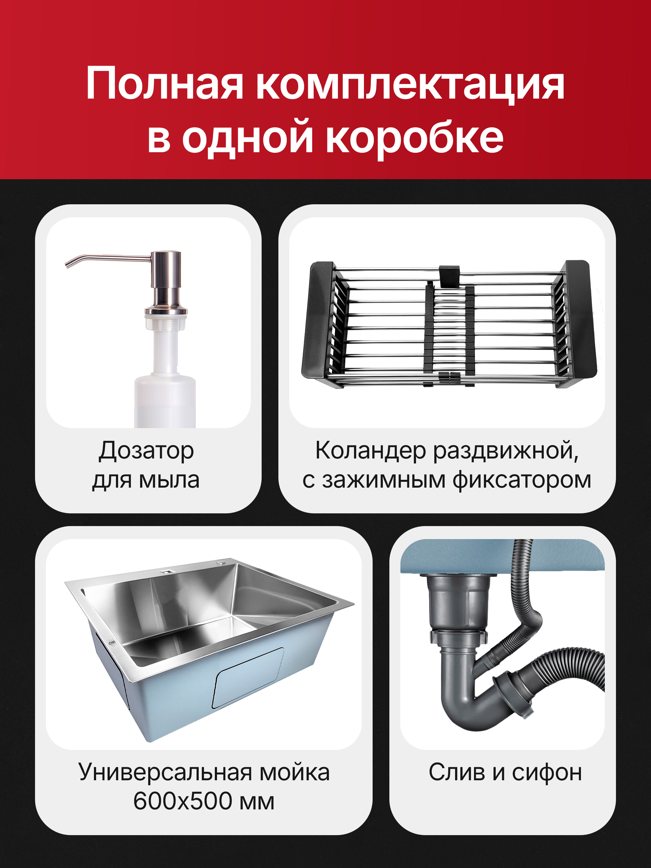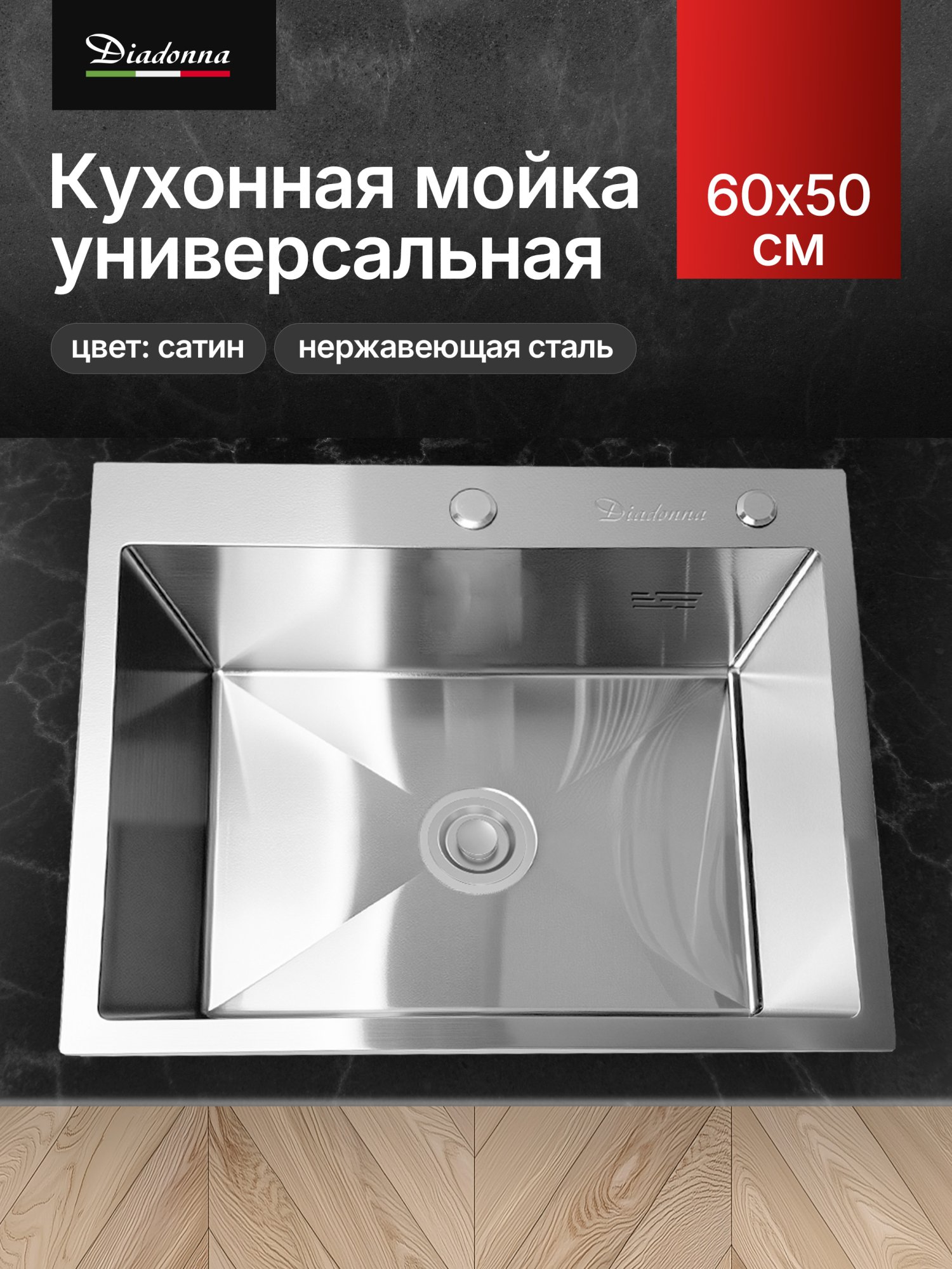 Мойка кухонная из нержавеющей стали Сатин Diadonna 60x50 — это идеальное решение для любой кухни. Она сочетает в себе элегантный дизайн и высокую функциональность, что делает её незаменимым элементом кухонного гарнитура. Изготовленная из качественной нержавейки, эта мойка отличается прочностью и долговечностью, что гарантирует её долгий срок службы. Мойка для кухни из нержавеющей стали обладает множеством преимуществ. Во-первых, она устойчива к коррозии и механическим повреждениям, что делает её идеальным выбором для активного использования. Во-вторых, гладкая поверхность легко очищается, что значительно упрощает уход за ней. Благодаря этому, вы сможете сэкономить время на уборке, уделяя больше внимания приготовлению пищи и общению с семьей. Эта накладная мойка отлично впишется в любой интерьер, будь то современный или классический стиль. Компактные размеры 60x50 см позволяют установить её даже в небольших кухнях, не жертвуя при этом функциональностью. Многофункциональная мойка оснащена сливом для раковины, что обеспечивает удобство использования и предотвращает накопление воды. Кроме того, вы можете дополнить мойку различными аксессуарами, такими как решетка для раковины или дозатор моющего средства, что сделает процесс мытья посуды еще более комфортным. Установка сантехники на кухне — это важный этап, и наш продукт идеально подходит для этого. Мы предлагаем мойку, которая станет не только практичным, но и стильным элементом вашего кухонного гарнитура. Если вы ищете раковину для кухни, которая сочетает в себе качество, функциональность и эстетичный внешний вид, мойка из нержавейки Сатин Diadonna 60x50 станет вашим идеальным выбором. Не упустите возможность преобразить свою кухню с помощью этой надежной и красивой мойки, которая прослужит вам долгие годы. Сделайте свою кухонную зону более удобной и стильной, выбрав мойку, которая отвечает всем вашим требованиям.