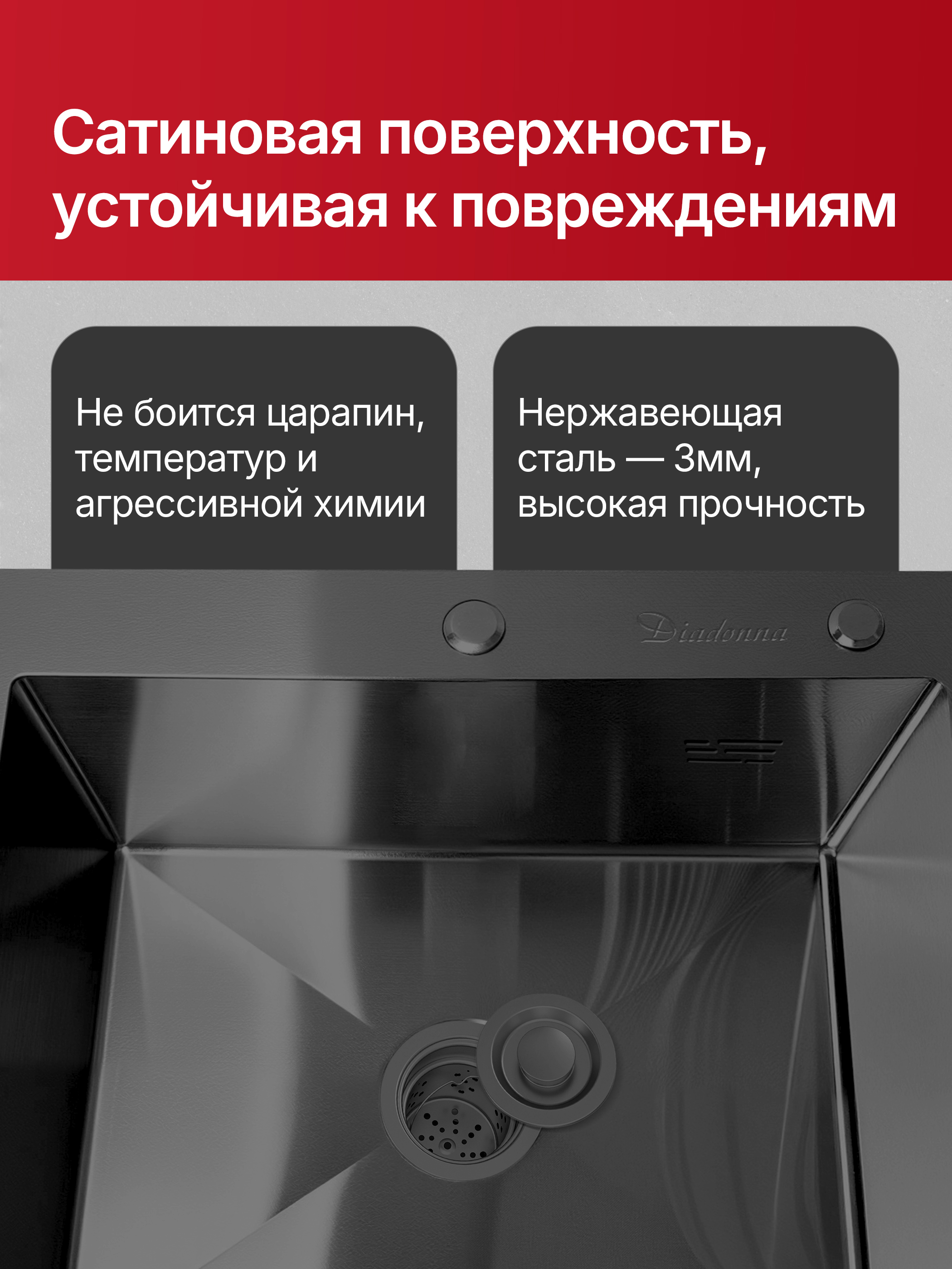 Ищете идеальное решение для вашей кухни? Обратите внимание на мойку кухонную из нержавеющей стали черный Сатин 70х50. Эта многофункциональная раковина станет незаменимым элементом вашего кухонного гарнитура, сочетая в себе стильный дизайн и высокую функциональность. Мойка из нержавейки — это не только современный внешний вид, но и долговечность. Нержавеющая сталь устойчива к коррозии и механическим повреждениям, что делает её отличным выбором для активного использования на кухне. Благодаря элегантному черному сатину, она легко впишется в любой интерьер, добавляя нотку изысканности. Эта накладная раковина для кухни имеет оптимальные размеры 70х50 см, что позволяет удобно размещать посуду и готовить без лишних хлопот. Встроенный слив для раковины обеспечивает быструю и эффективную отвод воды, а дополнительная решетка для раковины на кухню поможет вам организовать пространство для сушки посуды. Мойка для кухни из нержавейки подходит для установки в любых кухонных гарнитурах и столешницах. Вы можете выбрать комплект с дозатором моющего средства, что сделает процесс мытья посуды еще более удобным. Кроме того, вы можете использовать мойку в сочетании с коландером, что позволит вам эффективно мыть овощи и фрукты. Эта кухонная мойка станет не только функциональным, но и стильным акцентом в вашем доме. Она идеально подходит для тех, кто ценит качество и стиль в каждой детали. Приобретая мойку из нержавеющей стали, вы делаете выбор в пользу долговечности и практичности. Не упустите возможность обновить свою кухню! Закажите мойку кухонную из нержавеющей стали черный Сатин 70х50 уже сегодня и наслаждайтесь комфортом и элегантностью на вашей кухне. С этой раковиной готовка и уборка станут настоящим удовольствием, а ваша кухня будет выглядеть безупречно!